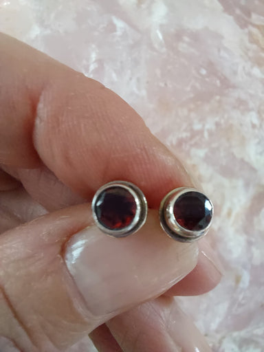 Garnet Round Faceted Stud Earrings - 0.6mm Diameter - 925 Sterling Silver Approximate Dimensions: L: 0.6cm x W: 0.6cm (Crystal Diameter: 0.546cm)A...