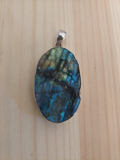 Labradorite Unpolished Oval Pendant set in Sterling Silver Approximate Dimensions: L: 4.2cm x W: 2.6cm x H: 0.9cm Approximate Weight: 17.5g Please ...