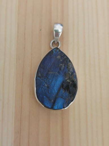 Labradorite Unpolished Teardrop Pendant set in Sterling Silver